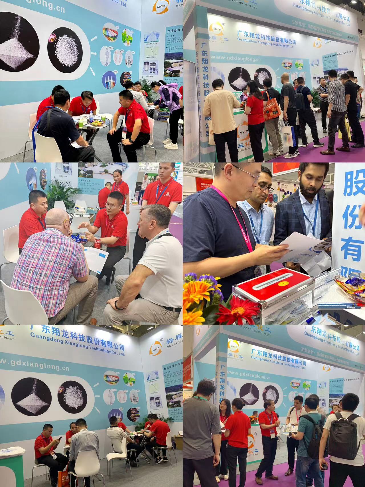 在此次展會上,翔龍科技展出了我司的核心產品:XL-02A,XL-75A,XL-6000等,我司以優選越南高純度大理石,搭配色選機進行色選分級。成品白度高,顏色穩定。再經過德國進口ALPINE干法立式攪拌研磨系統和英國ATRITOR脫水改性系統形成超細類、超高包覆率類碳酸鈣。